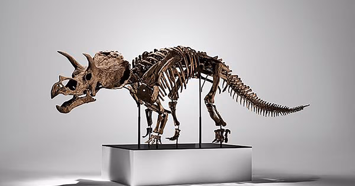 Un esqueleto parcial de triceratops juvenil, apodado Cera, fue subastado en Nueva York por 5.3 millones de dólares, duplicando el precio de salida y sumándose a la creciente demanda de fósiles entre coleccionistas privados. El ejemplar, descubierto en 2016 en Dakota del Sur, conserva cerca del 50 % del cráneo y el 70 % del esqueleto original.