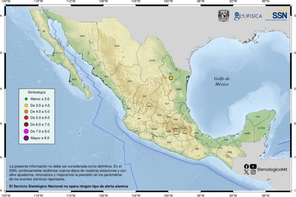 Sismo de 3.4 grados sacude zona citrícola de Nuevo León sin causar daños